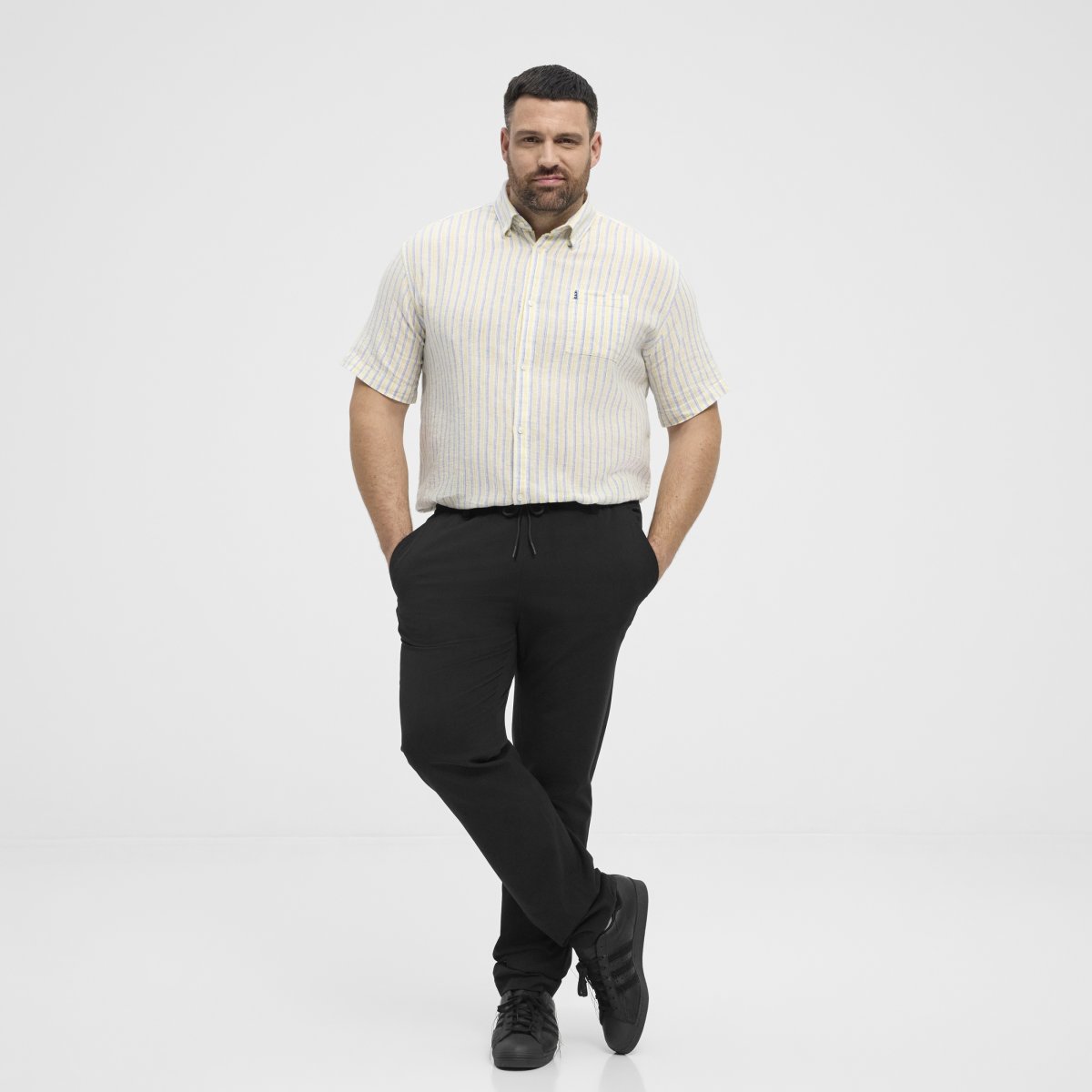 Pantaloni mărime mareCumpără-l de la noi în mărimile 2XL-8XLDe la brandul North LatitudeFabricat din 54% in, 44% vâscoză și 2% elastanCuloarea este negruSe spală la mașină la 30°.Produs de sezon - mărimile nu sunt reintroduse în stocClick aici pentru a afișa ghidul de mărimi