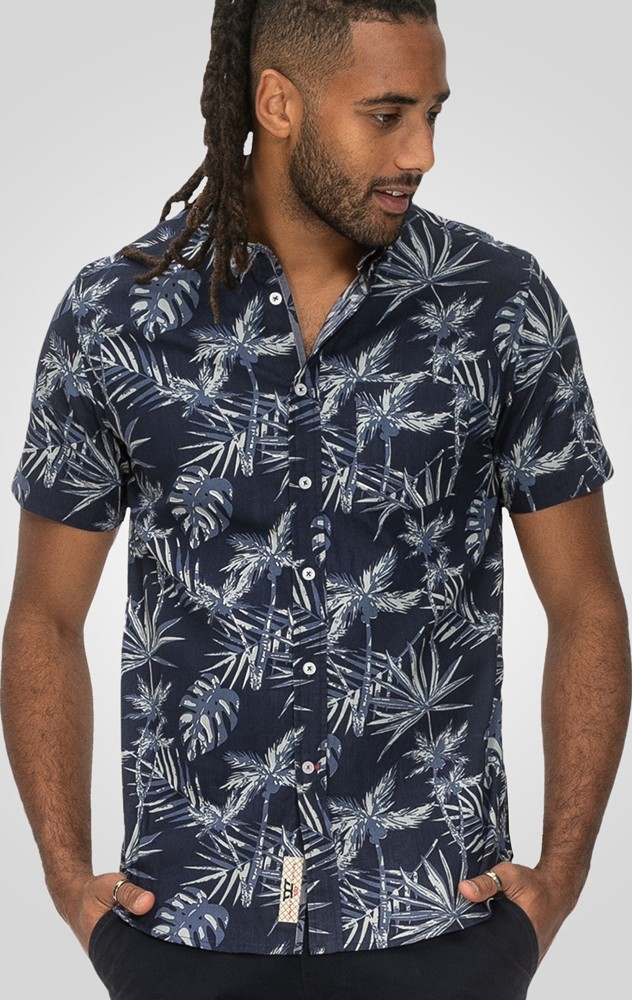 Ghidul mărimilor - D555 Truro Hawaiian AOP Short Sleeve Button Down Collar Shirt Navy