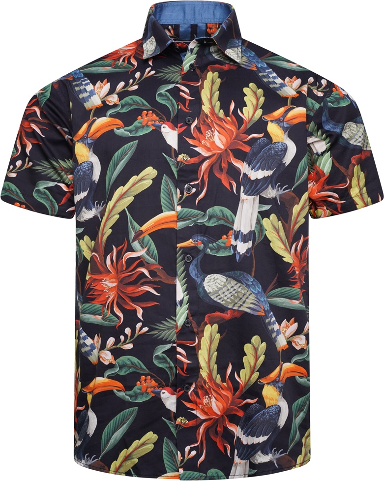 Ghidul mărimilor - Kam Jeans 6066 Bird Print Short Sleeve Shirt Navy