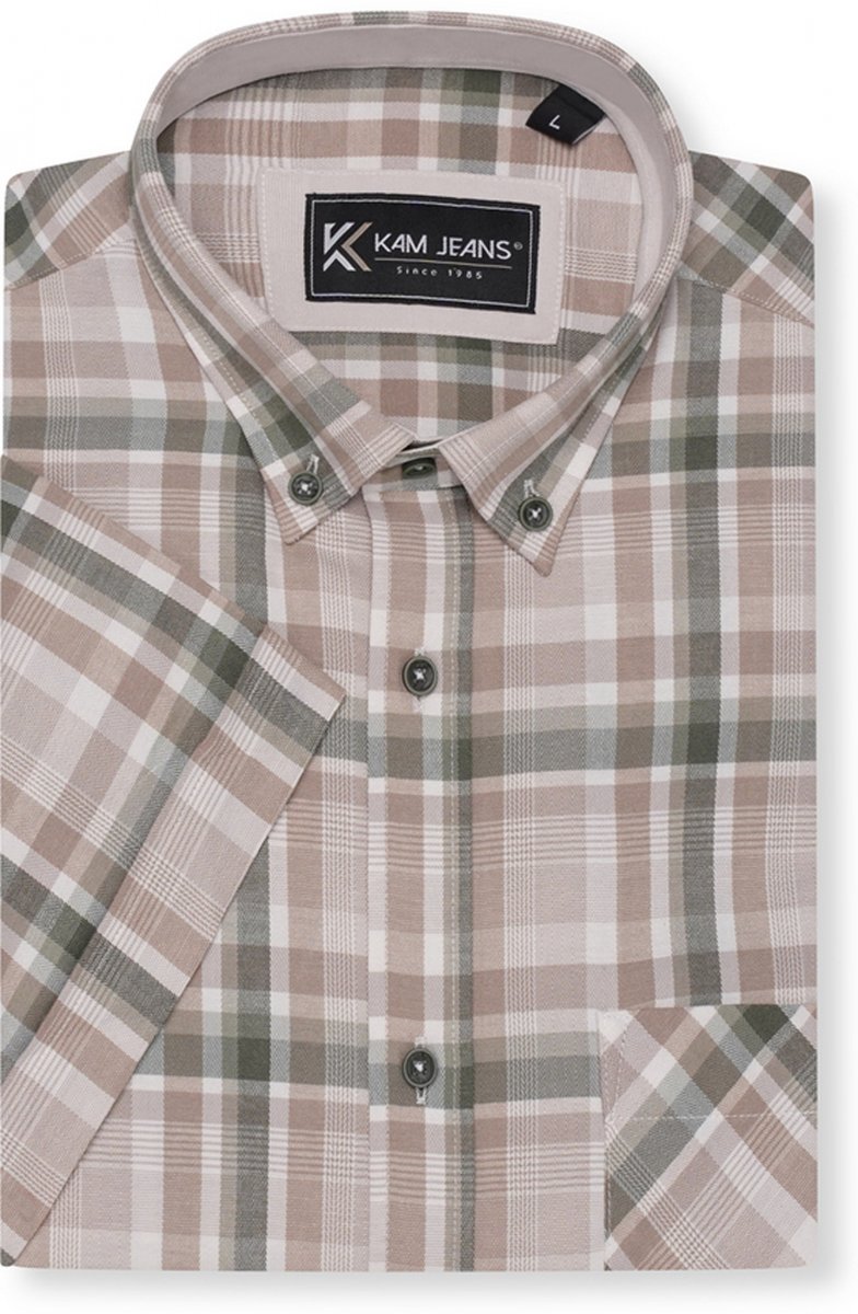 Ghidul mărimilor - Kam Jeans 6339 Checked Short Sleeve Shirt Beige