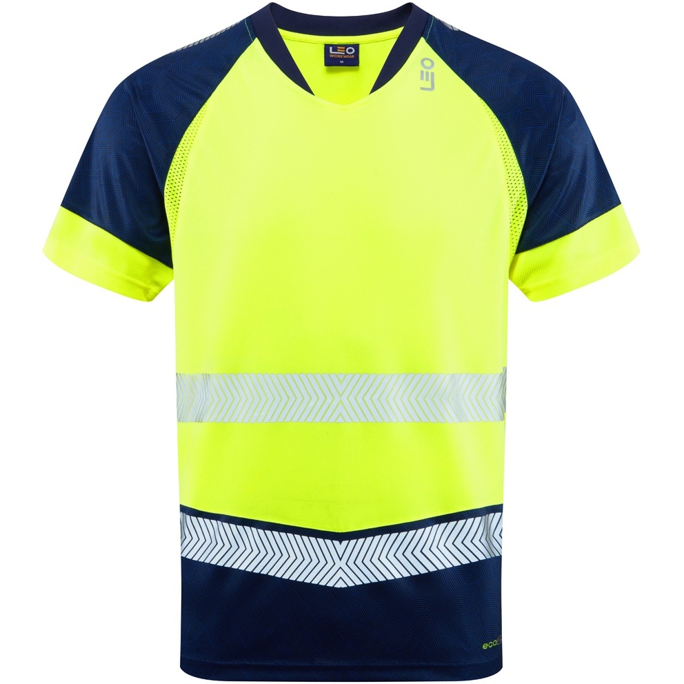 Ghidul mărimilor - Leo Forda Ecoviz Performance+ Dual Colour T-Shirt Hi-Vis Yellow/Navy Print