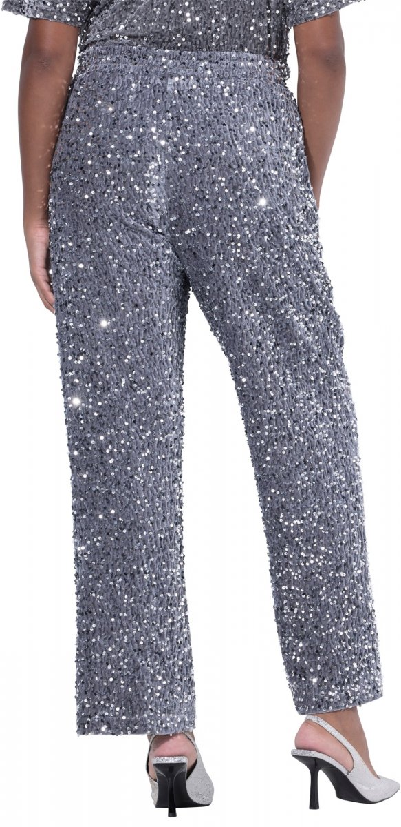 Ulla Popken Sequined Velvet Comfort Waist Pants Grey