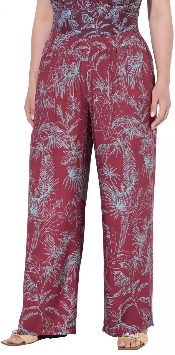 Ulla Popken Wide Leg Elastic Waist Jungle Print Palazzo Pants Brown