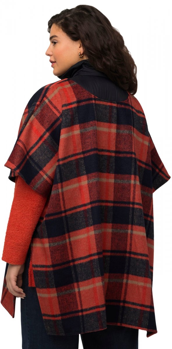 Ulla Popken Oversized Plaid Wing Collar Poncho Red Orange