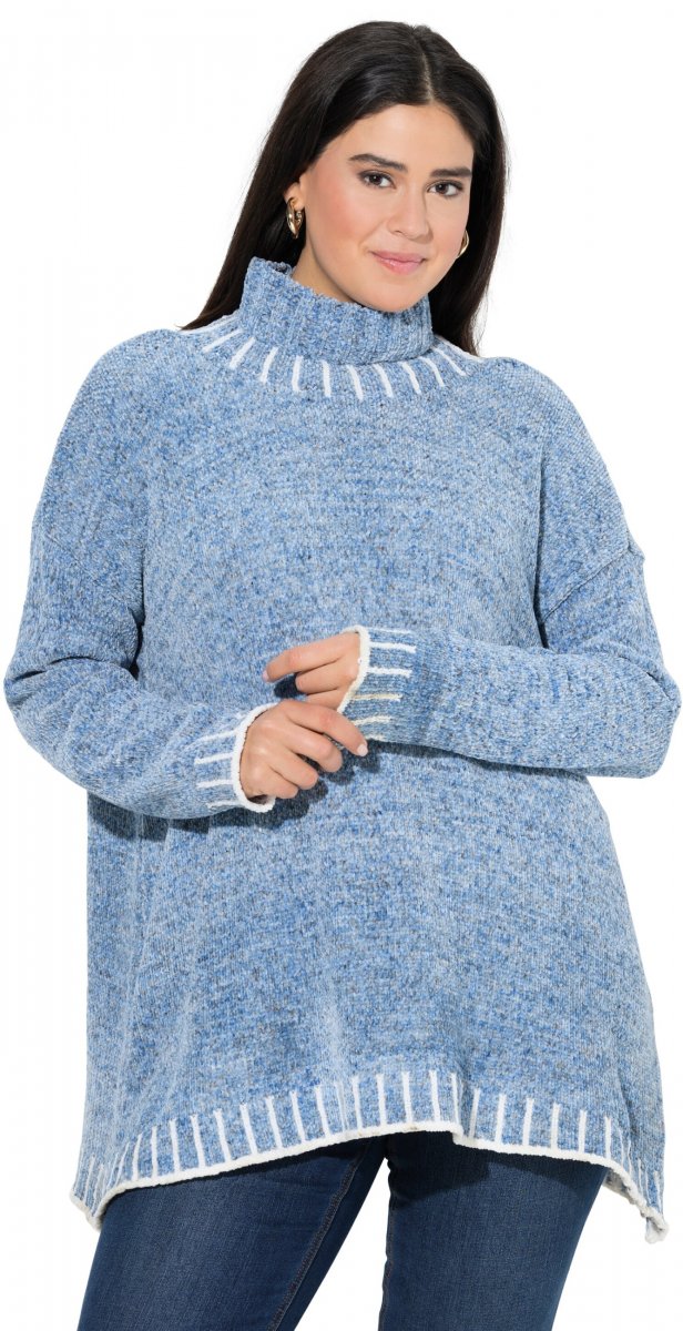 Ulla Popken Blanket Stitch Oversized Turtleneck Sweater Dove Blue
