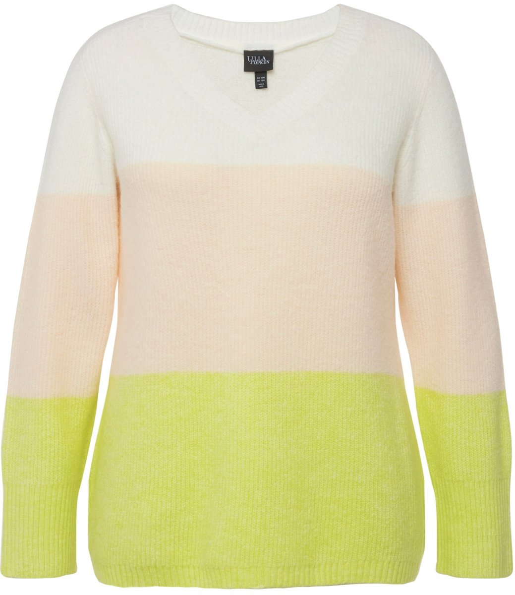 Ghidul mărimilor - Ulla Popken Block Stripe Long Sleeve V-Neck Sweater Lime Green