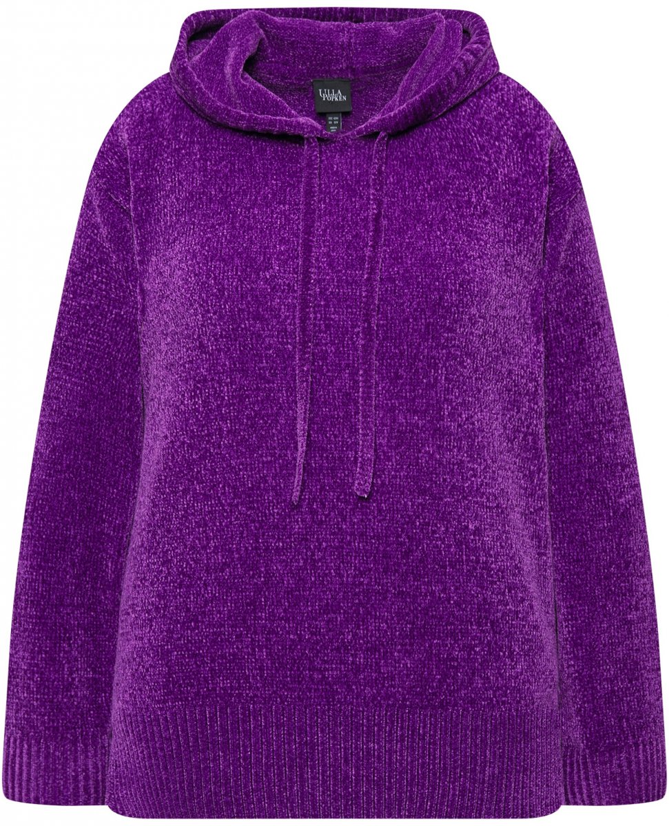 Ulla Popken Chenille Knit Hoodie Dark Purple