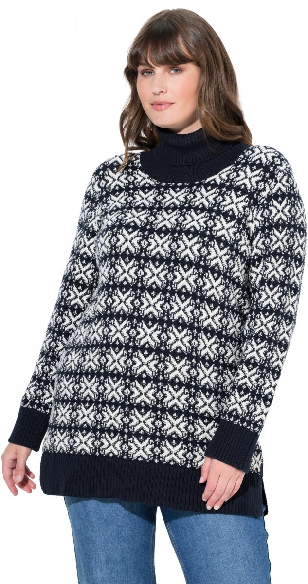 Ghidul mărimilor - Ulla Popken Eco Cotton Geometric Snowflake Sweater Navy