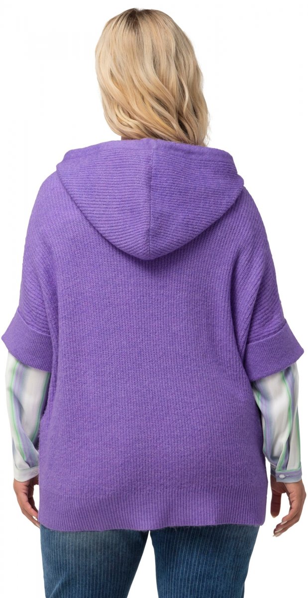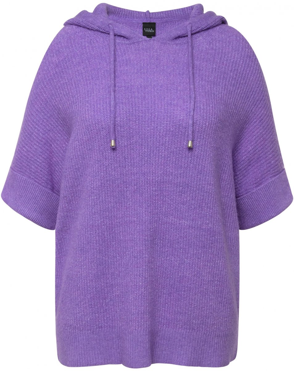 Ulla Popken Fuzzy Knit Short Sleeve Hoodie Pale Lilac