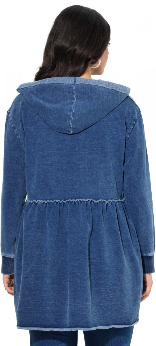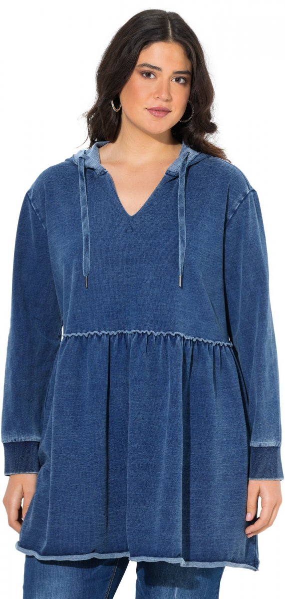 Ulla Popken Indigo Dyed Flounce Panel Hoodie Blue