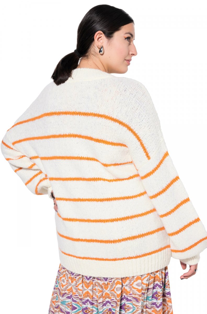 Ghidul mărimilor - Ulla Popken Oversized Striped Balloon Sleeve Sweater Off-White