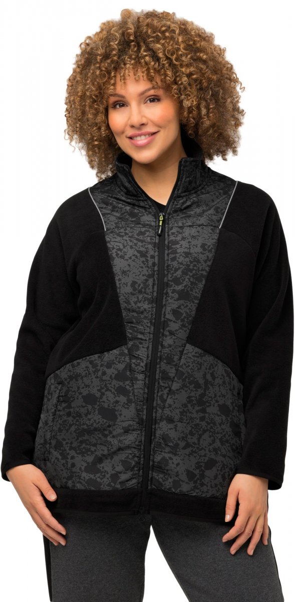 Ulla Popken Patch Print Fleece Jacket Black