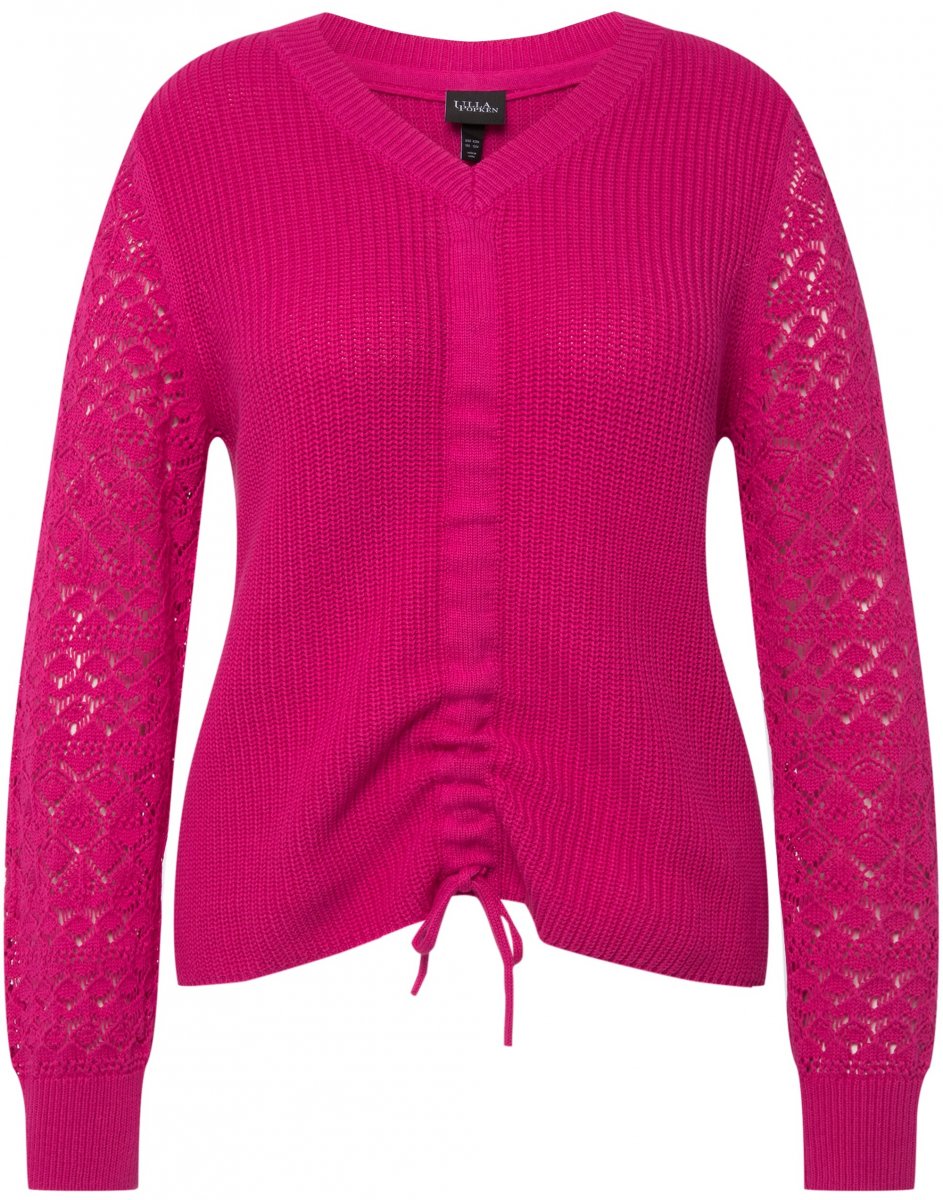 Ghidul mărimilor - Ulla Popken Shaker Stitch Cropped Gathered Sweater Fuchsia Pink
