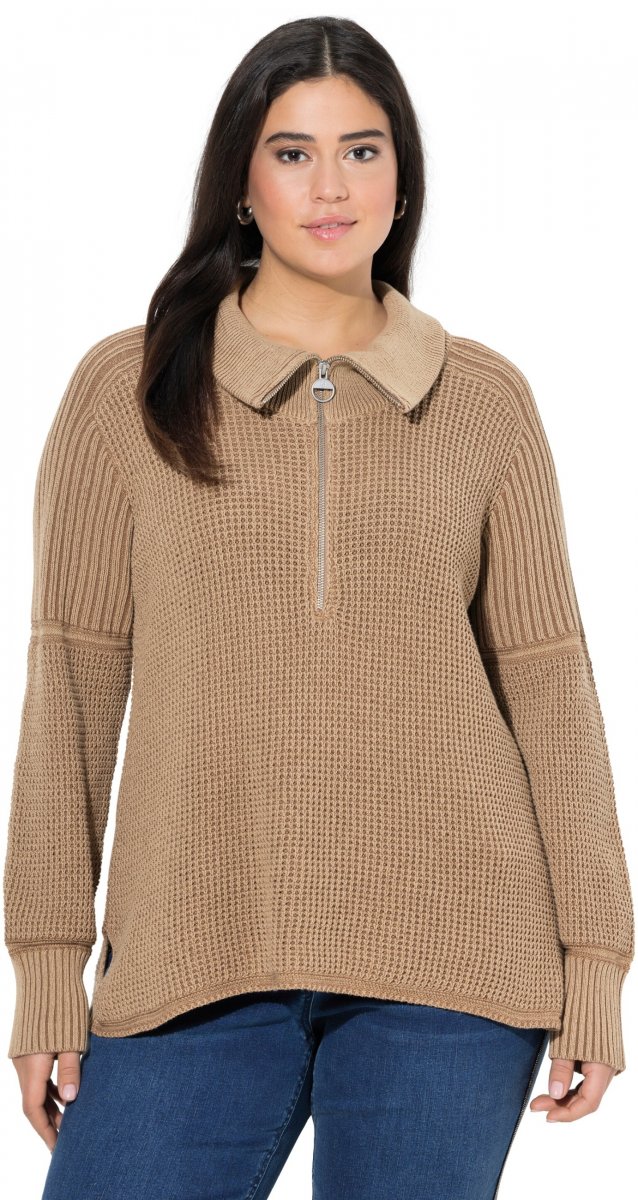 Ghidul mărimilor - Ulla Popken Two-Tone Mixed Knit Troyer Collar Sweater Caramel