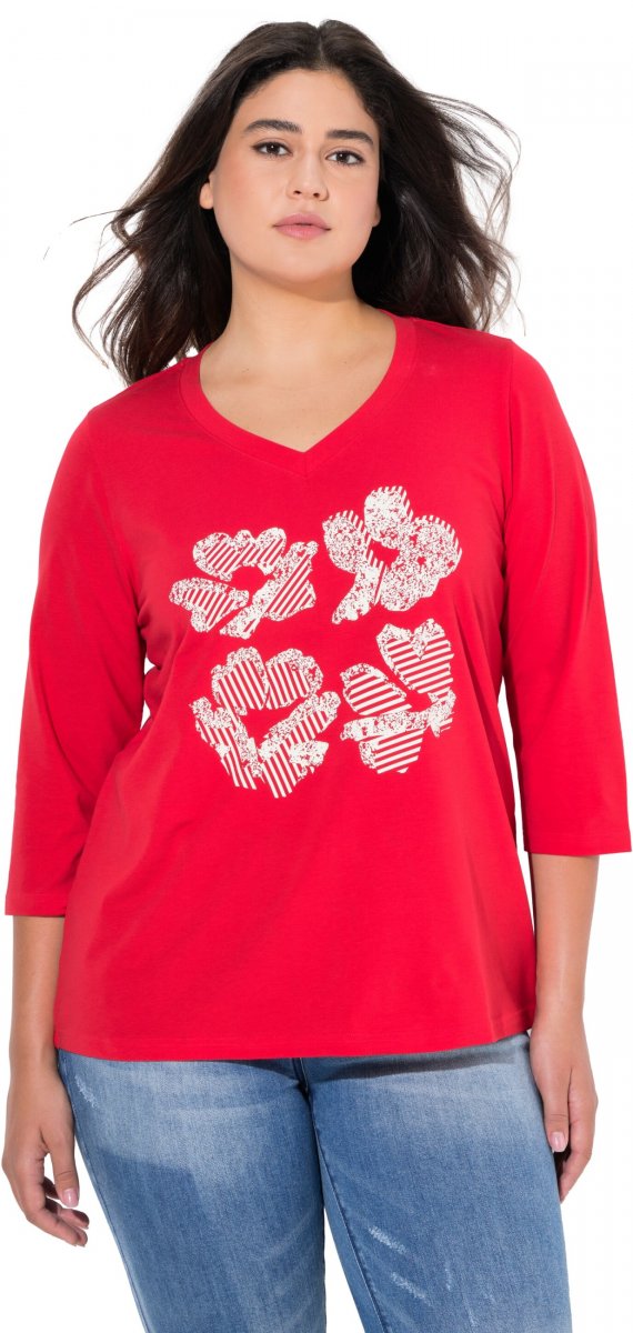 Ulla Popken Floral Graphic V-Neck Tee Lychee