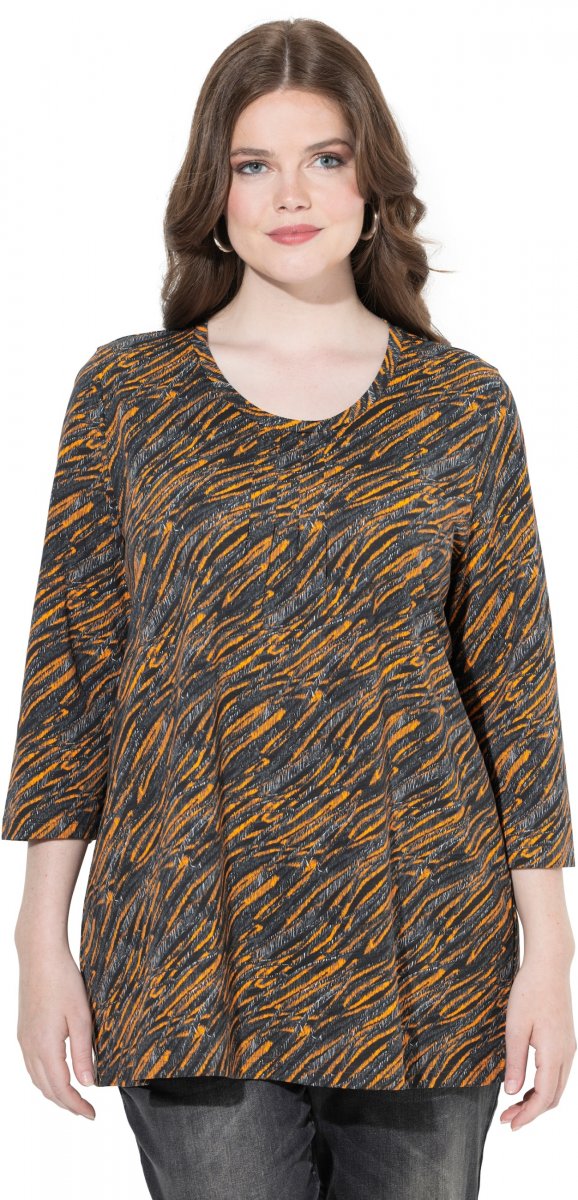 Ulla Popken Graphic Print 3/4 Sleeve Tee Neon Orange
