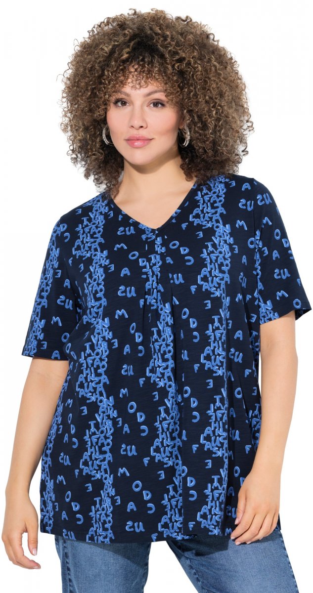 Ulla Popken Letter Print Short Sleeve Tee Navy