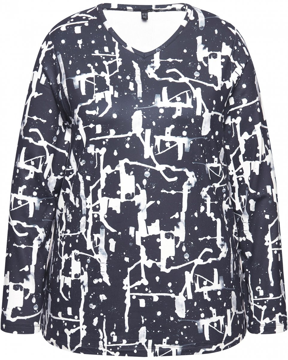 Ulla Popken Quick Drying Abstract Print Tee Black