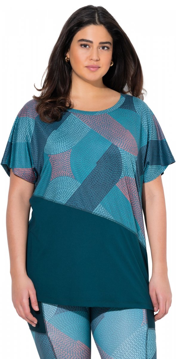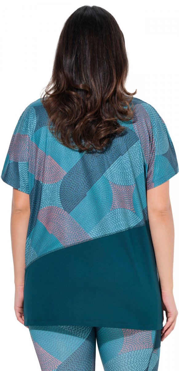 Ulla Popken Quick Drying Geometric Print Short Sleeve Tee Dark Petrol