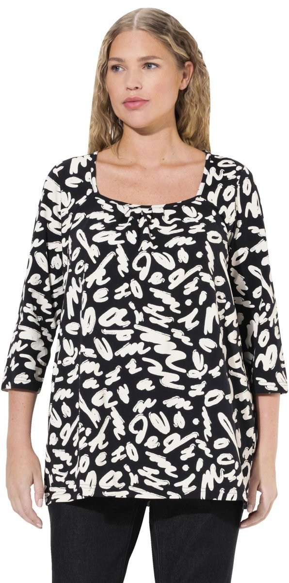Ghidul mărimilor - Ulla Popken Scribble Print Square Neck 3/4 Sleeve Tee Black