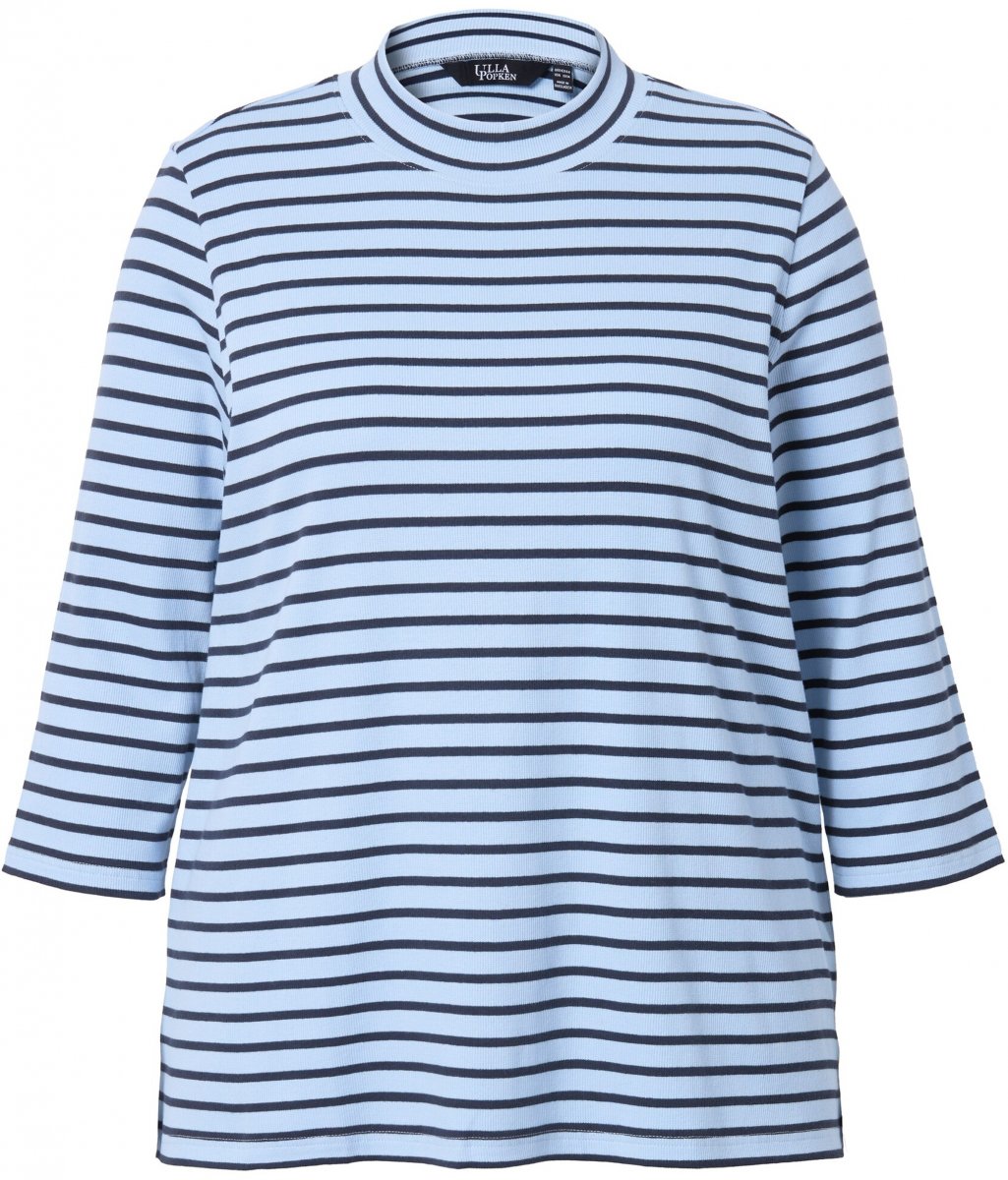 Ulla Popken Striped 3/4 Sleeve Turtleneck Tee Light Blue