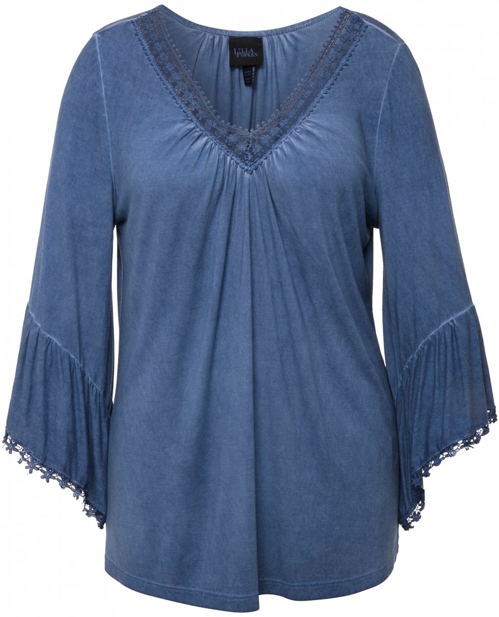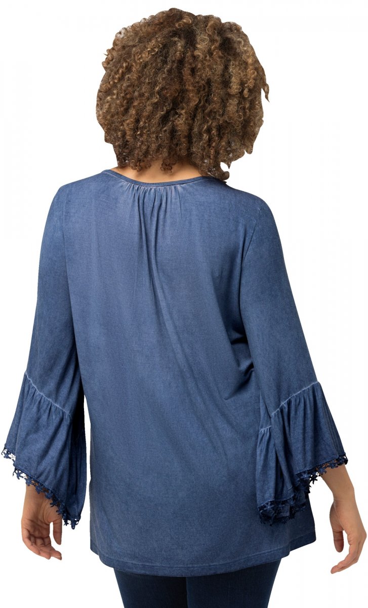 Ulla Popken Trumpet Sleeve Cold Dyed Tee Dove Blue