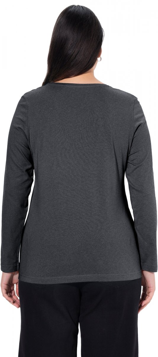 Ulla Popken Basic Round Neck Long Sleeve Slim Fit Cotton Tee Charcoal
