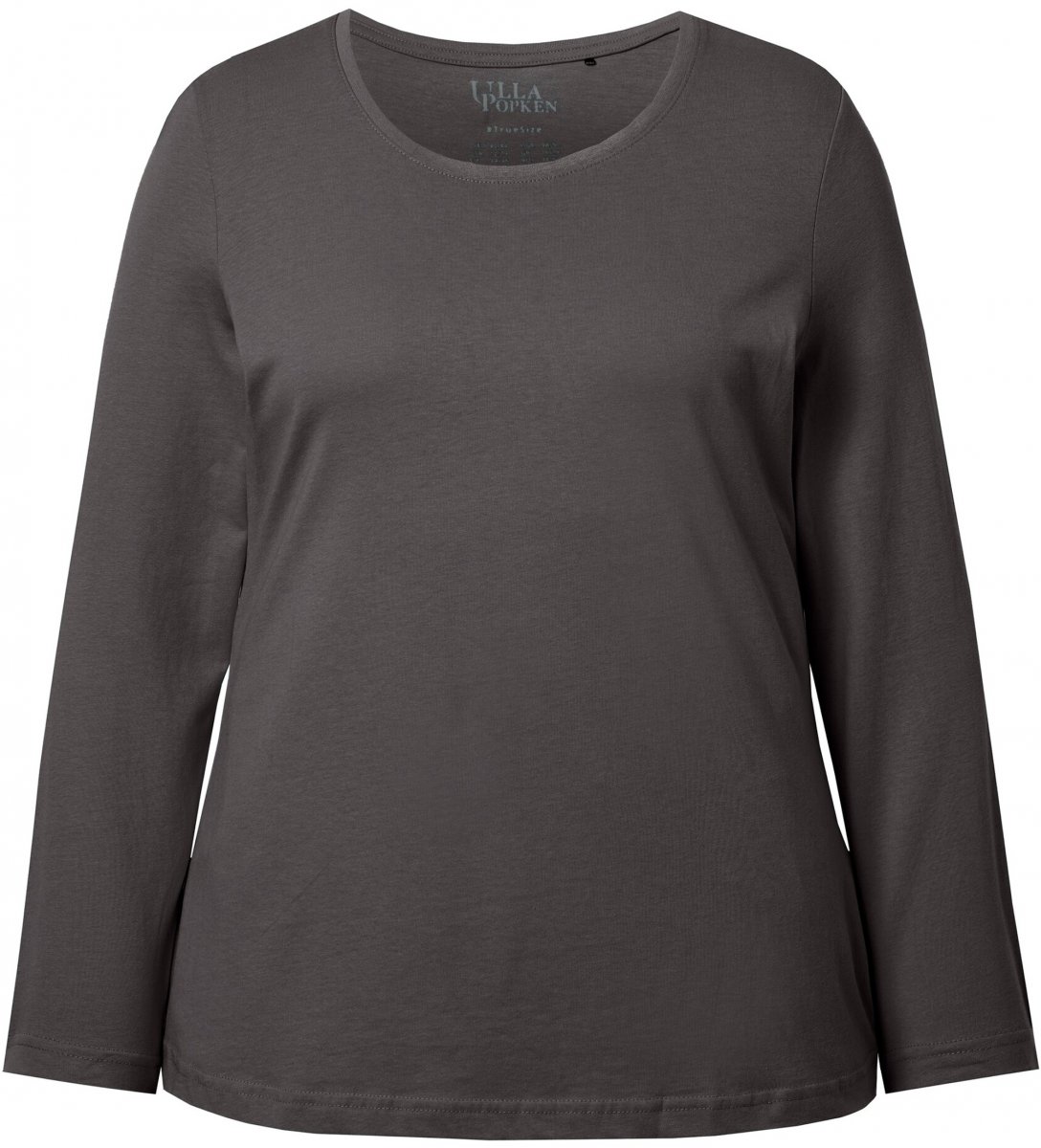 Ulla Popken Basic Round Neck Long Sleeve Slim Fit Cotton Tee Graphite Grey