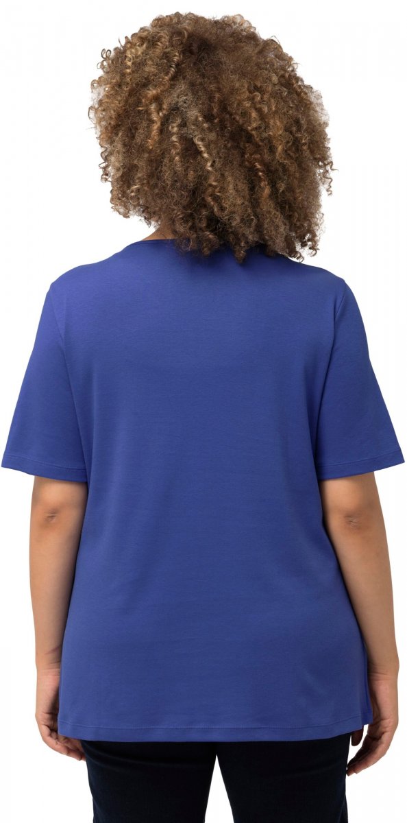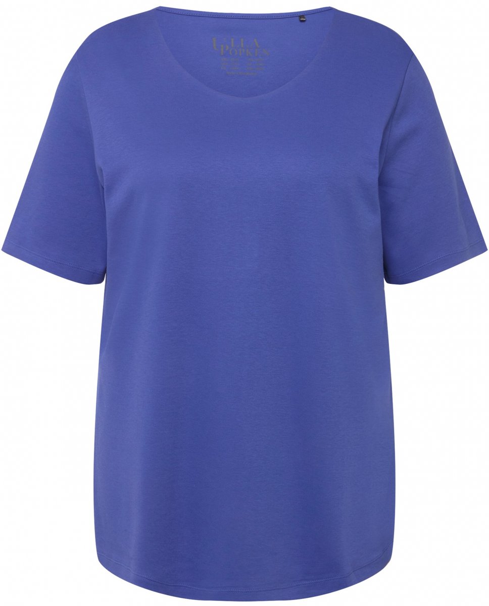 Ulla Popken Double Layer Rounded V-Neck Slim Fit Tee Blue Purple