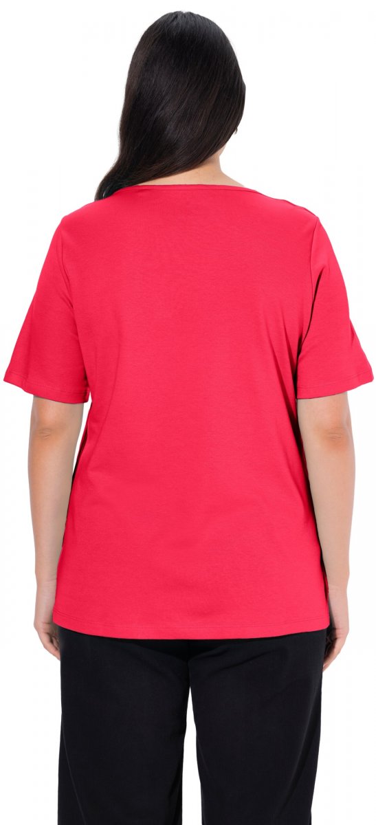 Ghidul mărimilor - Ulla Popken Double Layer Rounded V-Neck Slim Fit Tee Red