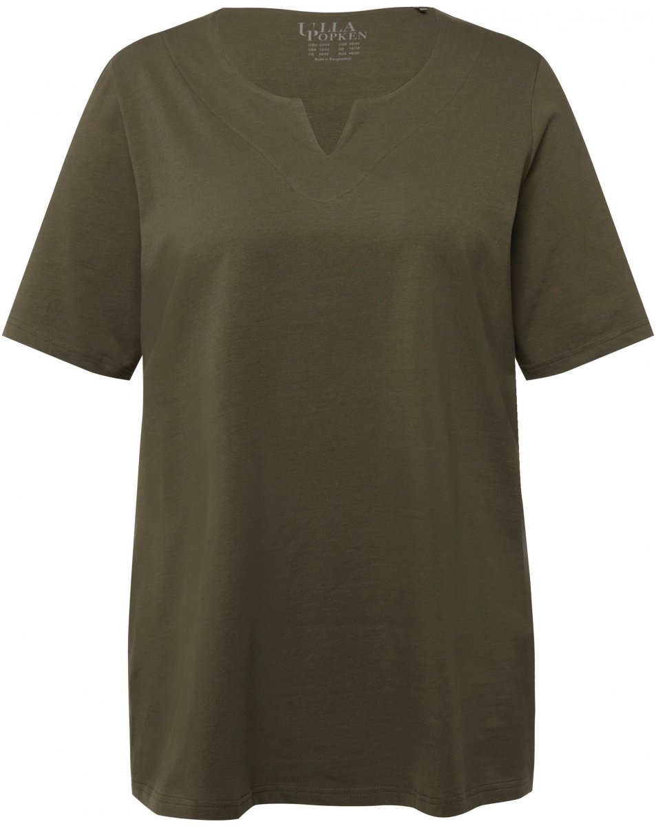 Ulla Popken Essential Notch Neck Stretch Tee Forest Green