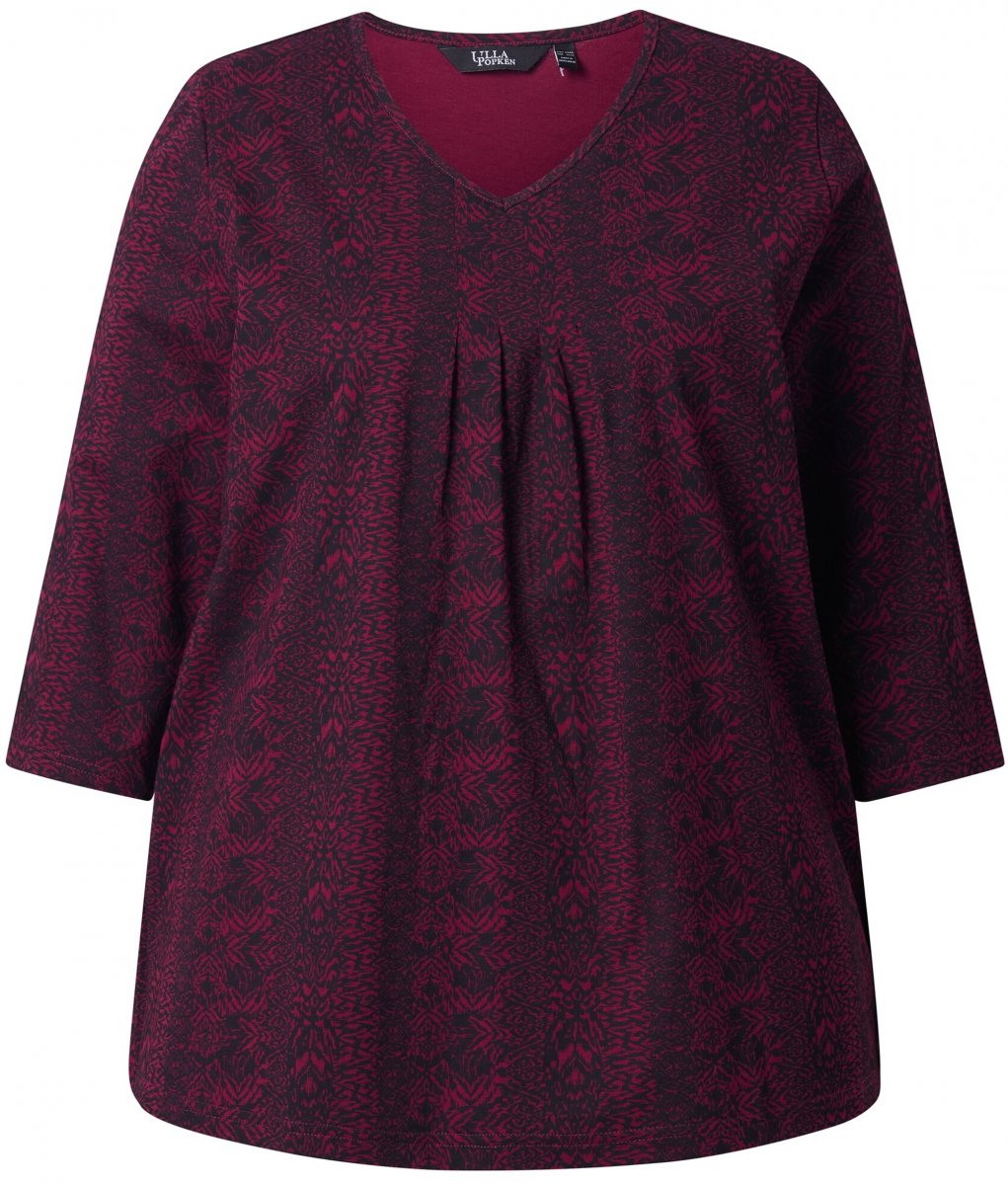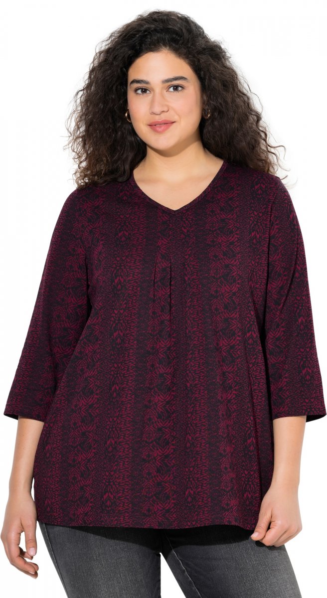 Ulla Popken Mixed Pattern Stripe 3/4 Sleeve Tee Black