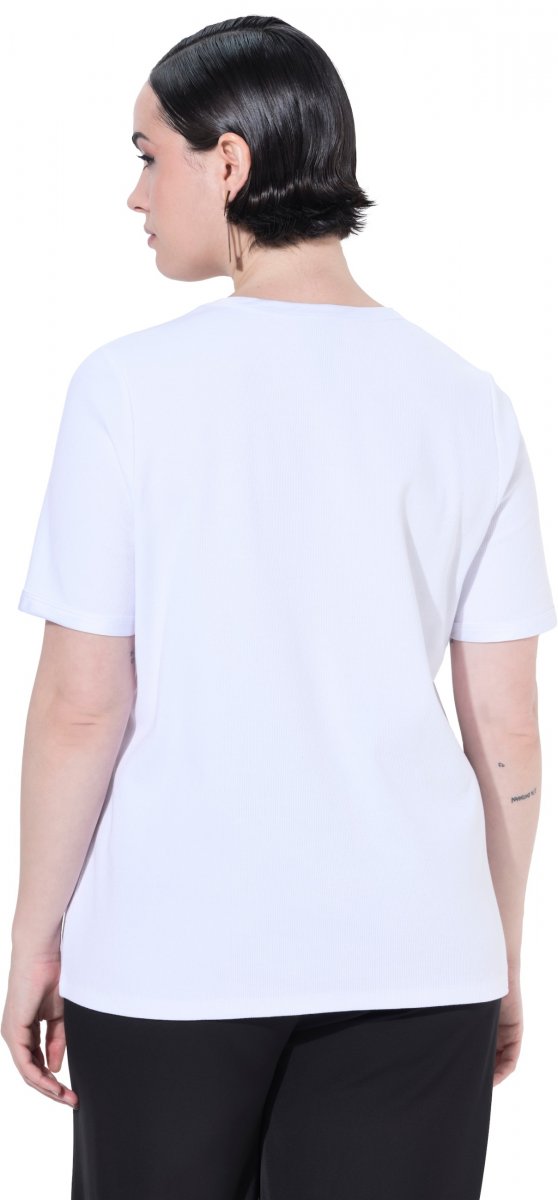 Ghidul mărimilor - Ulla Popken Satin Trimmed Ribbed Jersey Short Sleeve T-Shirt Snow White