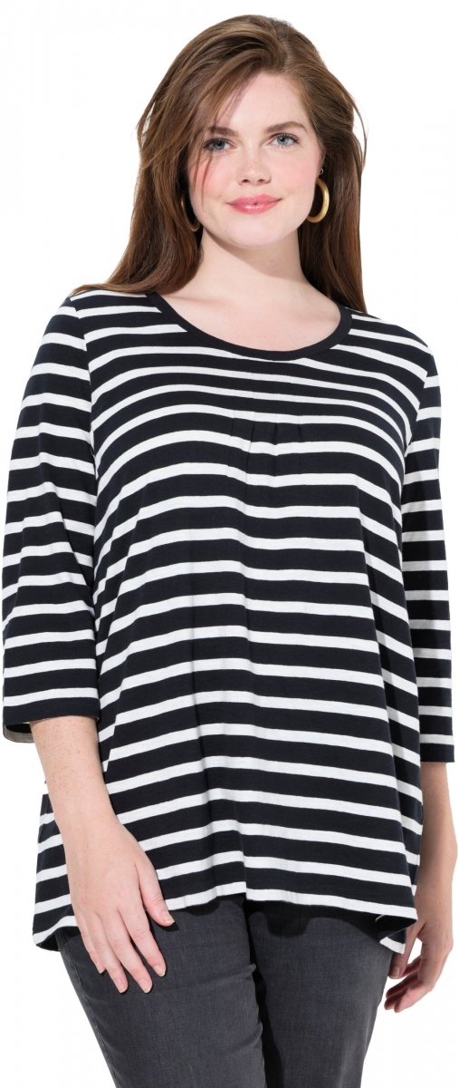 Ghidul mărimilor - Ulla Popken Striped 3/4 Sleeve A-Line Tee Black