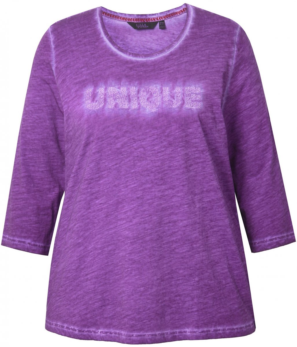 Ulla Popken UNIQUE Embroidered 3/4 Sleeve Tee Purple