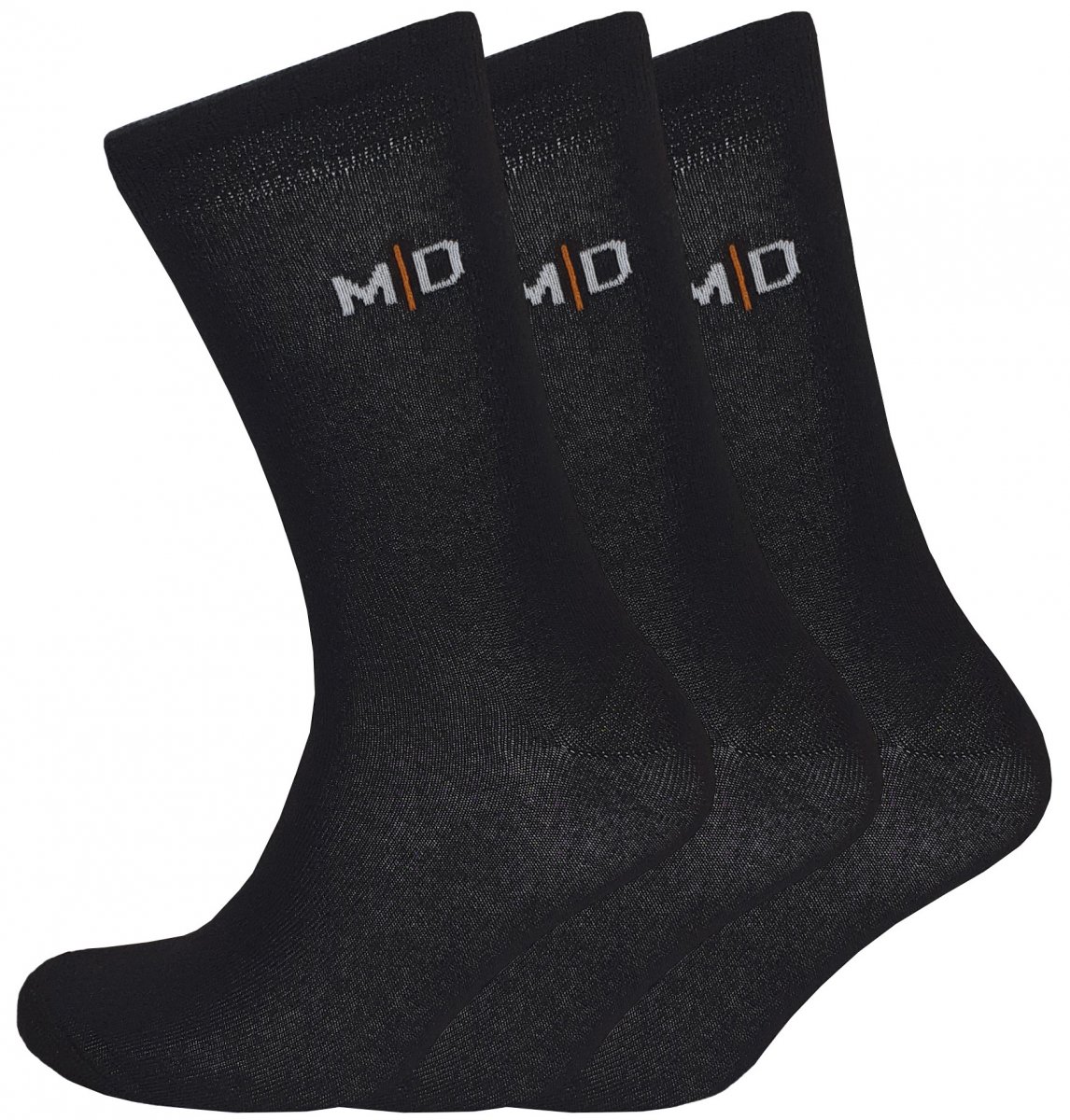 Un pachet de 3 perechi șosete (6 bucăți) de la marca noastră Motley Denim. Negru uni, cu un mic logo cool MD pe bată. Șosetele sunt fabricate din 50% bumbac, 48% poliester și 2% elastan. Pot fi spălate la 40 de grade Celsius. Se potrivesc cu mărimea de pantof 41-46.