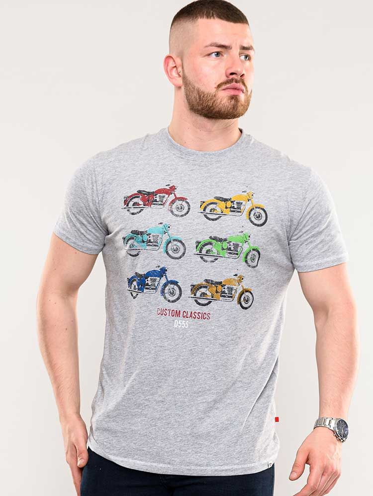 Ghidul mărimilor - D555 Bathurst Custom Classics Motorbike Printed T-Shirt Grey