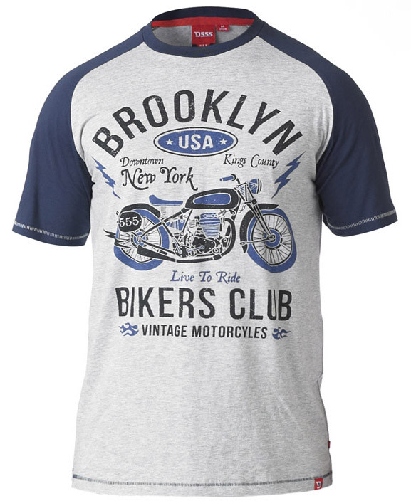 Kam Jeans 5755 Route 66 Motorbike Print T-Shirt Charcoal Marl