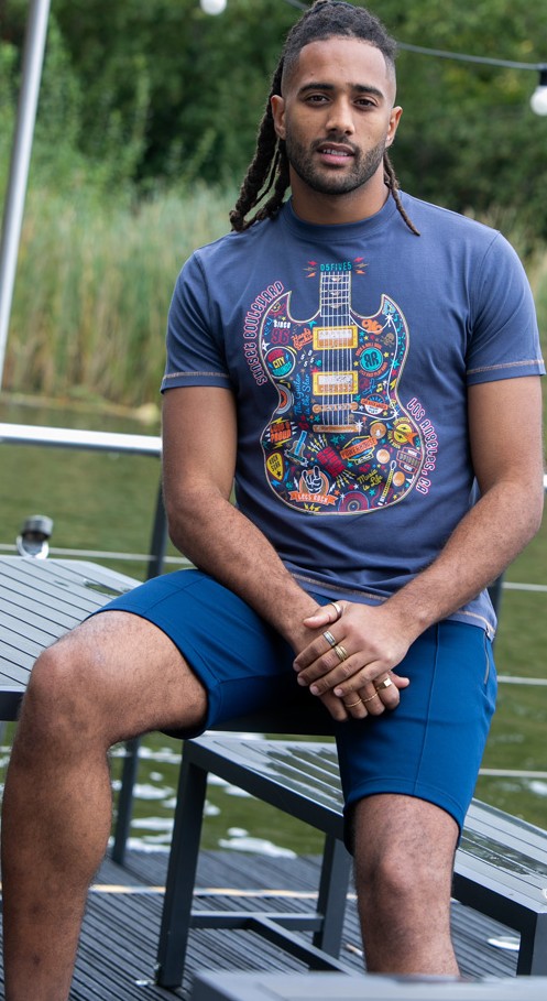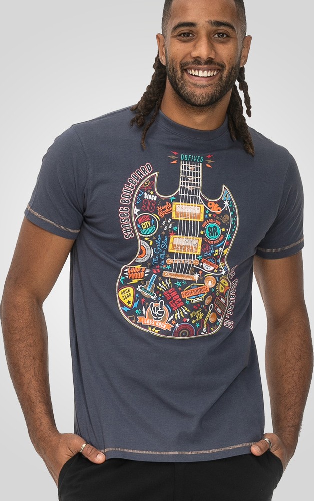 Ghidul mărimilor - D555 Stockport Multi Coloured Guitar Printed T-Shirt Denim